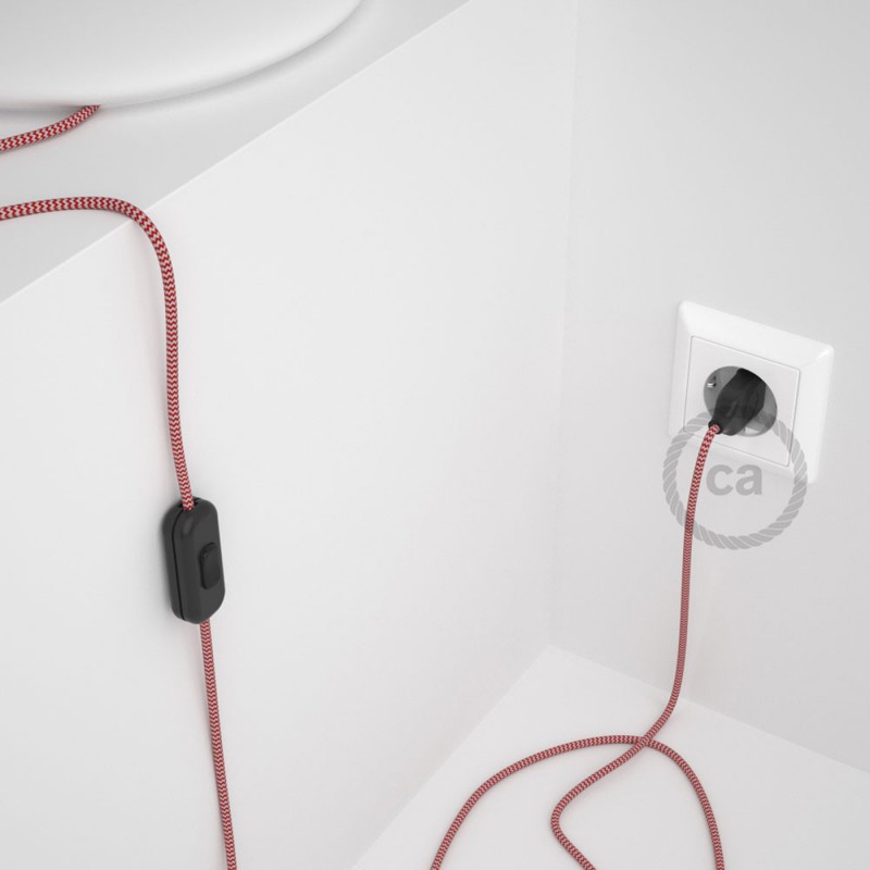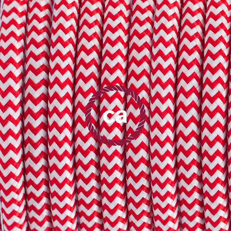 Renueva o da nueva color a una lámpara de mesa a través del cable Redondo en Tejido Efecto Seda RZ09 ZigZag Blanco Rojo con clavija y interruptor.