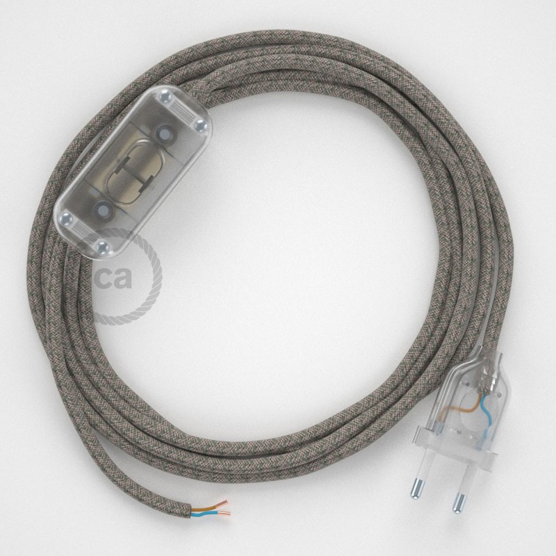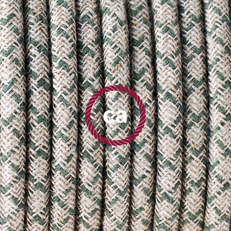 Renueva o da nueva color a una lámpara de mesa a través del cable Redondo en Algodón y Lino Natural RD62 Rombo Verde Tomillo con clavija y interruptor.