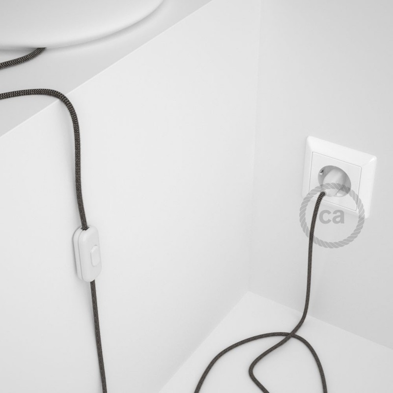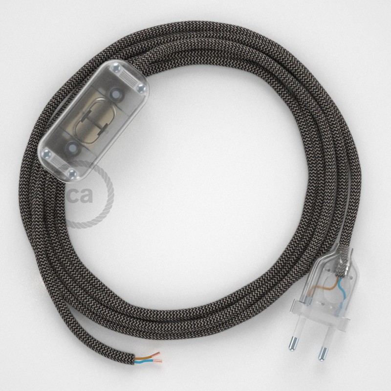 Renueva o da nueva color a una lámpara de mesa a través del cable Redondo en Algodón y Lino Natural RD74 ZigZag Antracita con clavija y interruptor.
