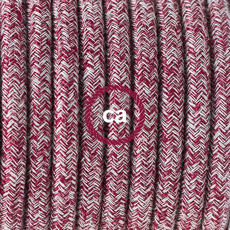 Renueva o da nueva color a una lámpara de mesa a través del cable Redondo en Algodón y Lino Natural RS83 Rojo con clavija y interruptor.