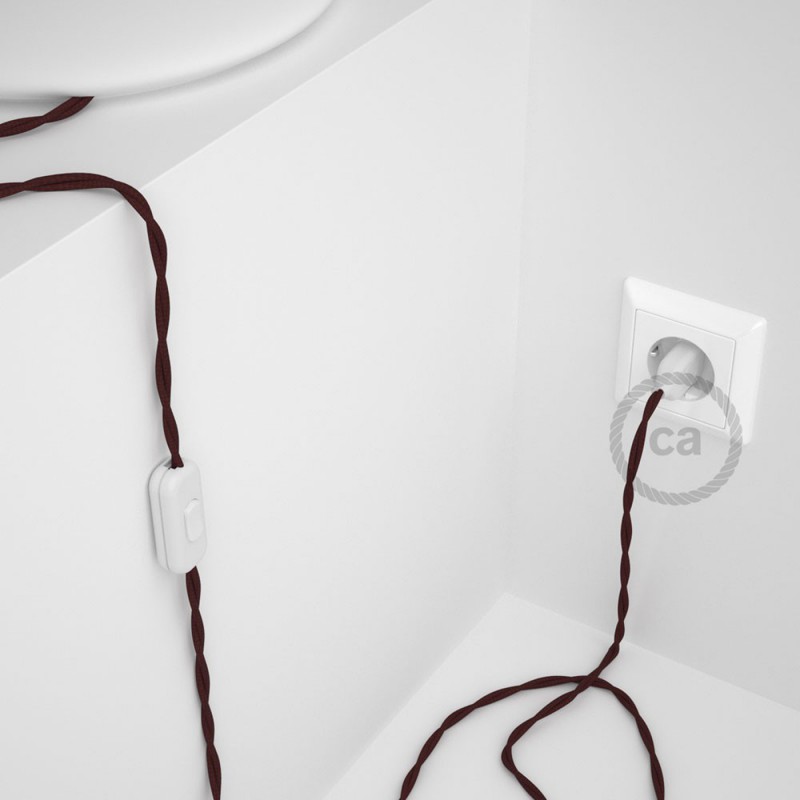 Renueva o da nueva color a una lámpara de mesa a través del cable Trenzado en Tejido Efecto Seda TM19 Burdeos con clavija y interruptor.