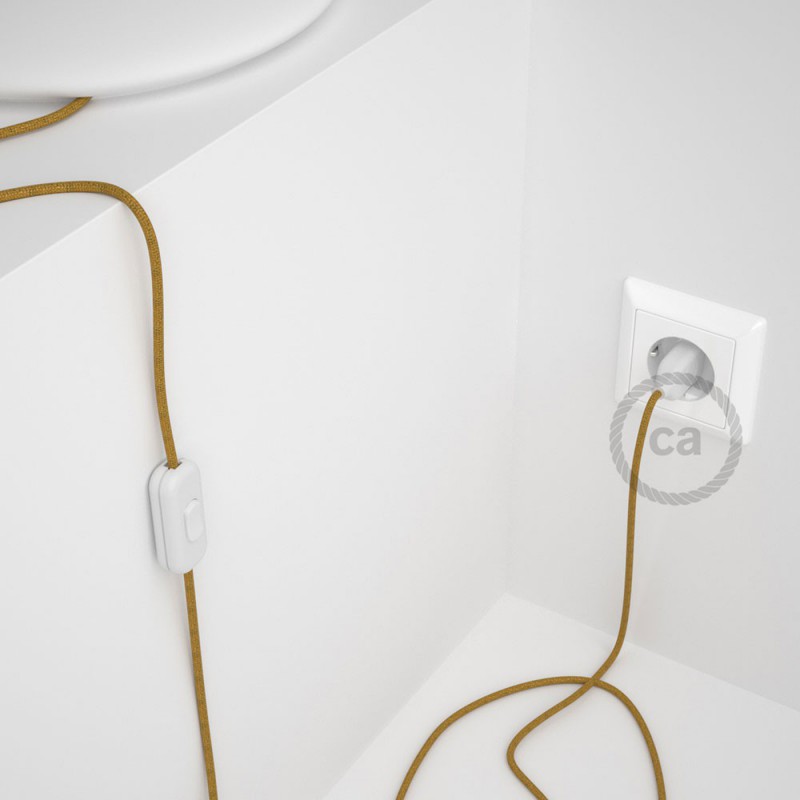 Renueva o da nueva color a una lámpara de mesa a través del cable Redondo en Tejido Efecto Seda RL05 Glitter Dorado con clavija y interruptor.
