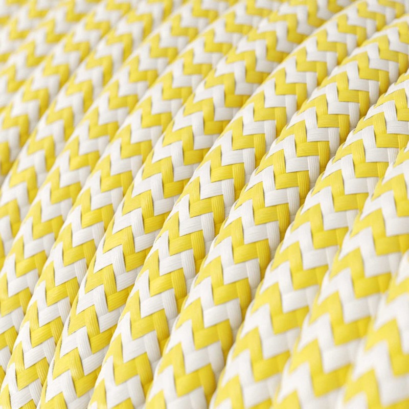 Cable Eléctrico Redondo Recubierto en tejido Efecto Seda ZigZag, Amarillo RZ10
