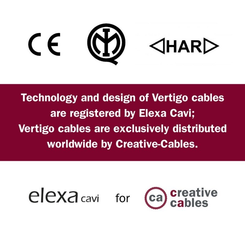 La tecnología y el diseño del cable Vertigo están registrados por Elexa Cavi; los cables Vertigo se distribuyen en todo el mundo exclusivamente por Creative-Cables.