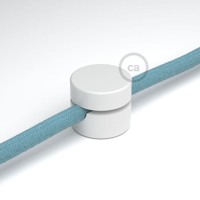 La sujeción universal blanco es el accesorio indispensable para fijar en la pared o en el techo los cables eléctricos recubiertos en tejido.