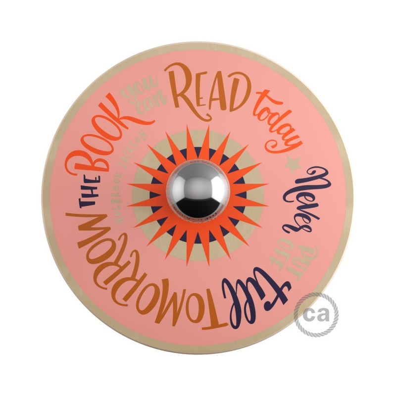 La lámpara de pared con pantalla UFO atraerá a los amantes de la lectura y de las citas inspiradoras. El disco incluye citas de escritores como Jane Austen, Holbrook Jackson, Abraham Lincoln, Honoré de Balzac, Fernando Pessoa, Mary Alcott y otros. Esta lámpara, diseñada en exclusiva para Creative-Cables, sirve para recordar la importancia de la lectura.