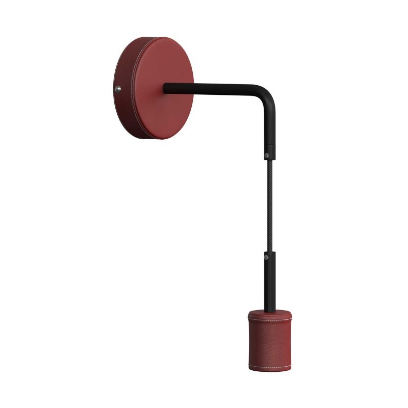 Esta luminaria de pared única ha sido diseñada para exponer tus bombillas favoritas, haciéndolas colgar de un cable. El rosetón y el portalámparas son fabricados en Italia con madera natural sin tratar, forrados con piel en diferentes acabados.