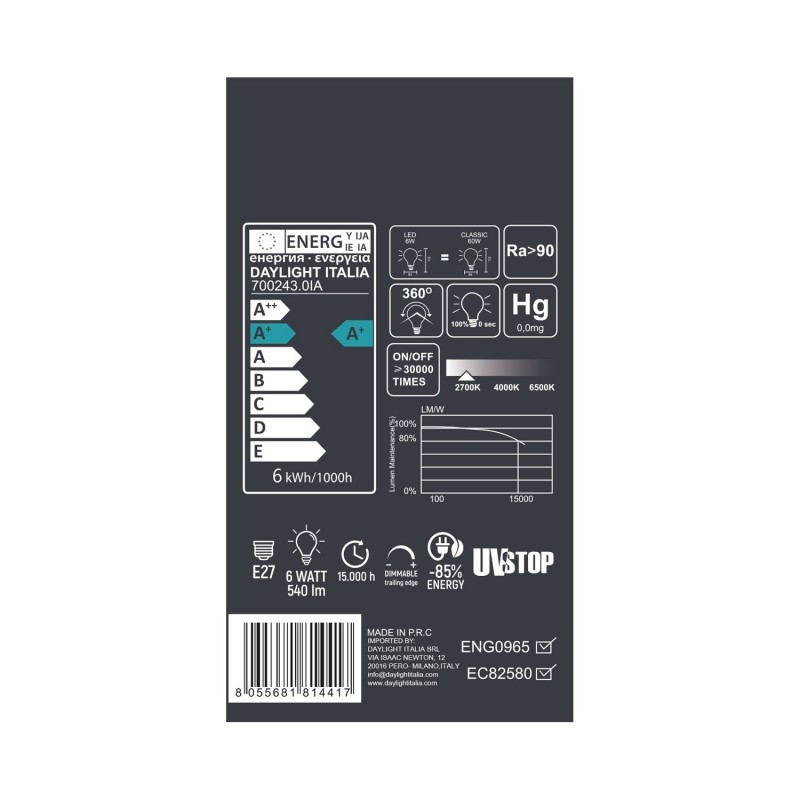 ATENCIÓN: para regular correctamente la intensidad de una bombilla LED, es necesario un regulador específico o un regulador universal de última generación; algunos están disponibles en nuestro catálogo.