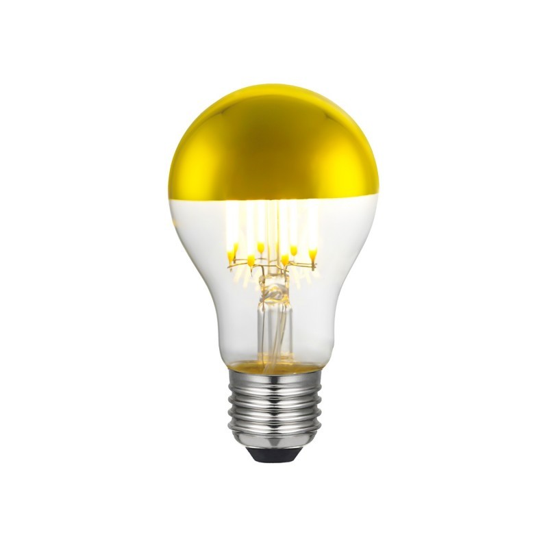 La bombilla LED Gota A60 7W media esfera dorado une la tecnología y el ahorro de las bombillas LED con un look sugestivo y agradablemete vintage.