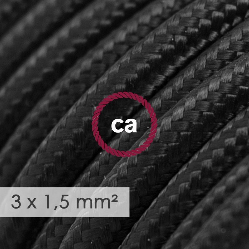 Cable flexible Redondo en tejido efecto seda Negro RM04, doble aislamento, recubierto en tejido.