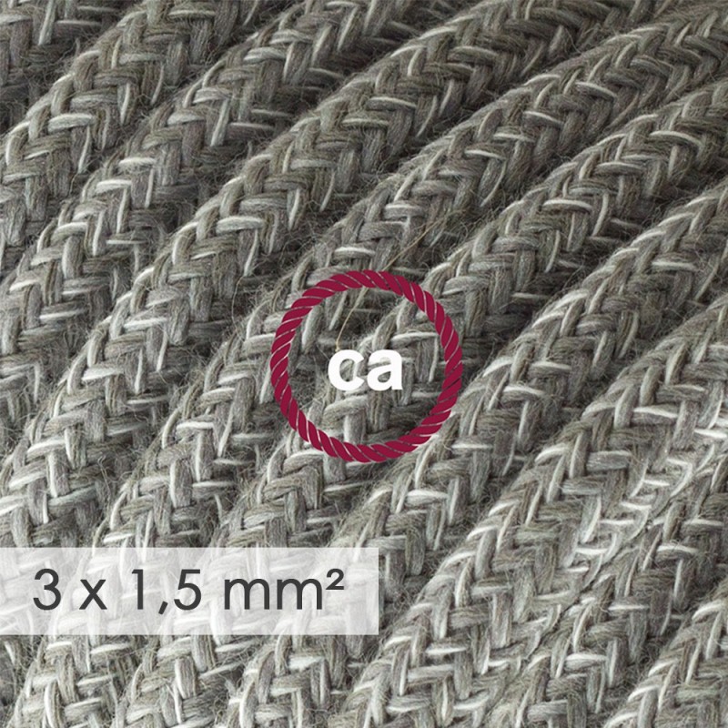 Cable flexible Redondo en Lino Natural Gris RN02, doble aislamento, recubierto en tejido.
