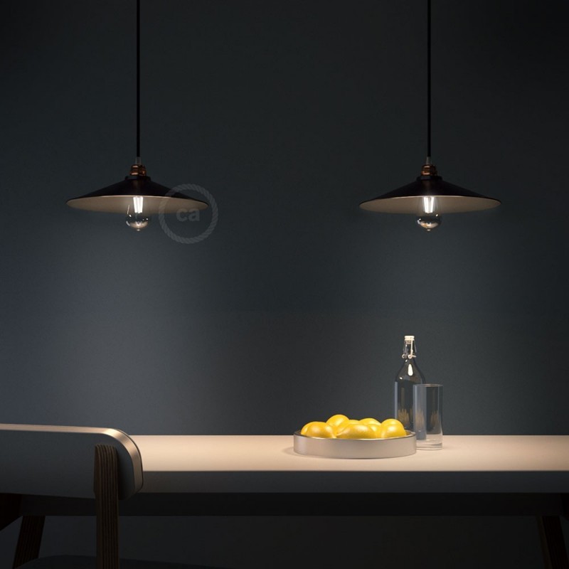 Elige el acabado que mejor se adapta al estilo del interior que quieres iluminar: el color del esmalte blanco del interior de la pantalla te permitirá aumentar o atenuar la luminosidad de tu lámpara, mientras que el acabado externo dará un toque externo industrail al ambiente.