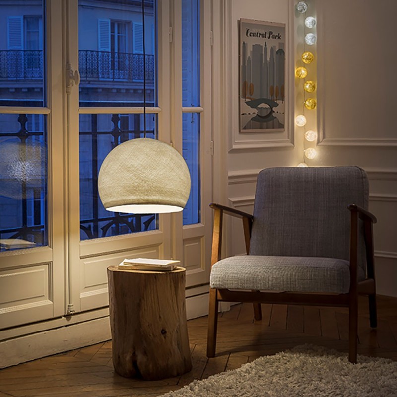 La textura de la pantalla Cúpula presenta unas microfibras que garantizan un original y delicado efecto de iluminación. Fabricada a mano, perfecta para crearlámparas de suspensión simple o múltiple: elige el accesorio de suspensión que necesites para combinarlo entre: pendel simple, Spider o Snake.