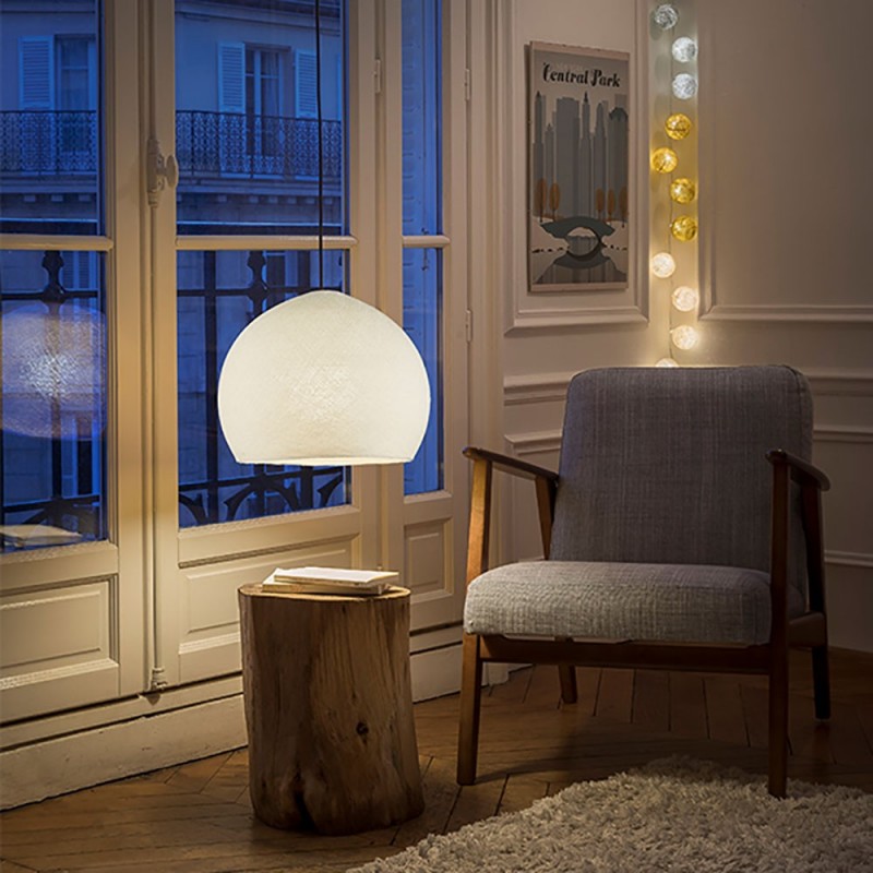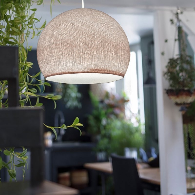 La textura de la pantalla Cúpula presenta unas microfibras que garantizan un original y delicado efecto de iluminación. Fabricada a mano, perfecta para crearlámparas de suspensión simple o múltiple: elige el accesorio de suspensión que necesites para combinarlo entre: pendel simple, Spider o Snake.