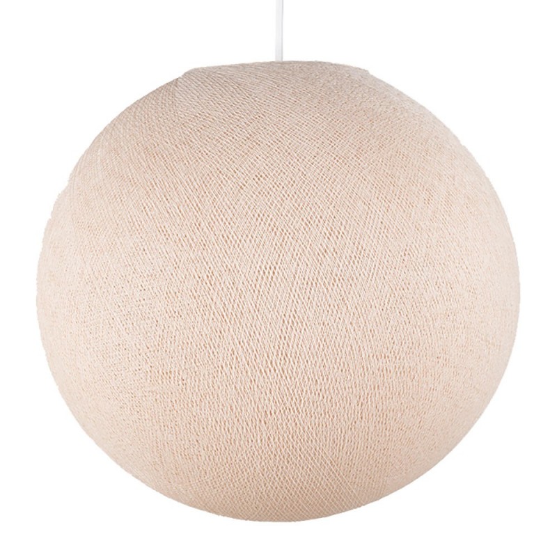Esta pantalla de hilo de poliéster se vende con un kit de montaje e inluye un elemento de fijación universal compatible con cualquier portalámparas para pantalla con casquillo E27.
