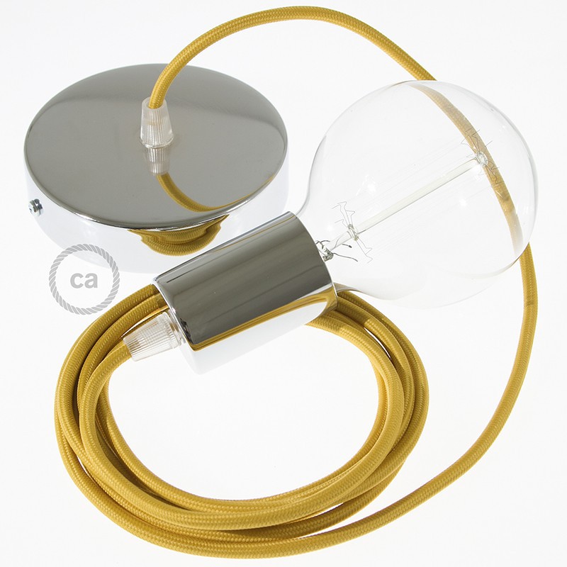 Crea tu pendel con el cable textil Mostaza en tejido Efecto Seda RM25: elige el color del rosetón y del portalámpara, la longitud del cable y si recibirlo ya montado por el personal creative-cables o en forma de kit para el montaje. Los pendels Creative-cables son ideales para dar un toque de estilo y de color a tu hogar.