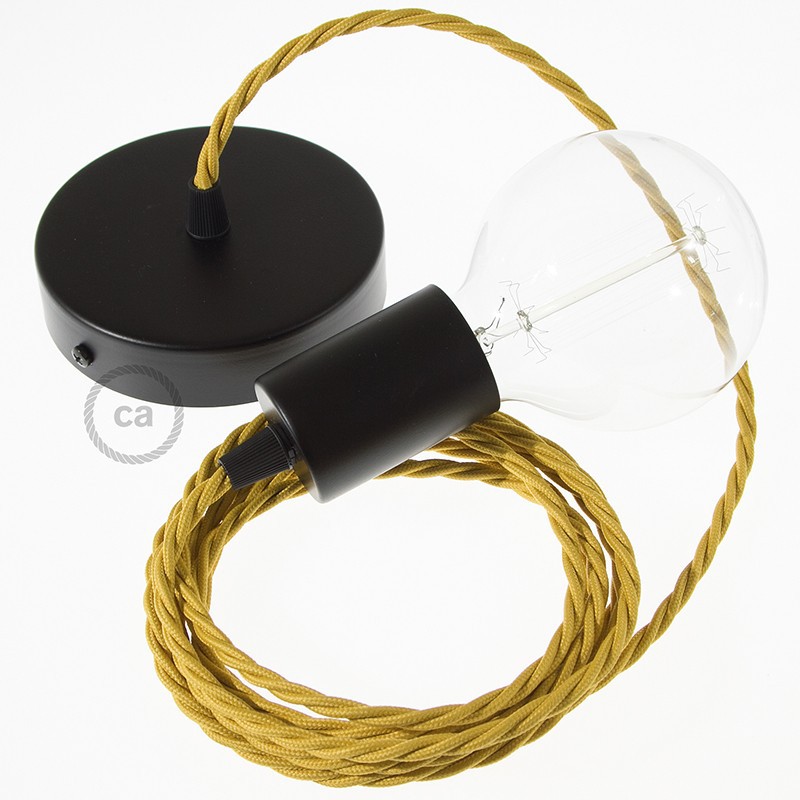 Crea tu pendel con el cable textil Mostaza en tejido Efecto Seda TM25: elige el color del rosetón y del portalámpara, la longitud del cable y si recibirlo ya montado por el personal creative-cables o en forma de kit para el montaje. Los pendels Creative-cables son ideales para dar un toque de estilo y de color a tu hogar.