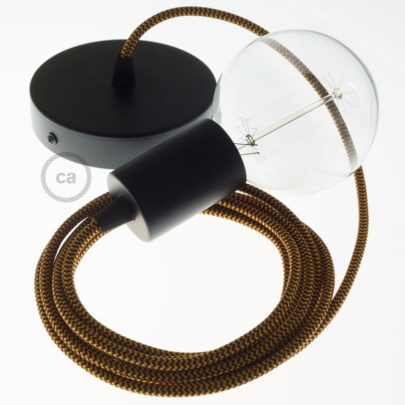 Crea tu pendel con el cable textil ZigZag Dorado y Burdeos en tejido Efecto Seda RZ23: elige el color del rosetón y del portalámpara, la longitud del cable y si recibirlo ya montado por el personal creative-cables o en forma de kit para el montaje. Los pendels Creative-cables son ideales para dar un toque de estilo y de color a tu hogar.