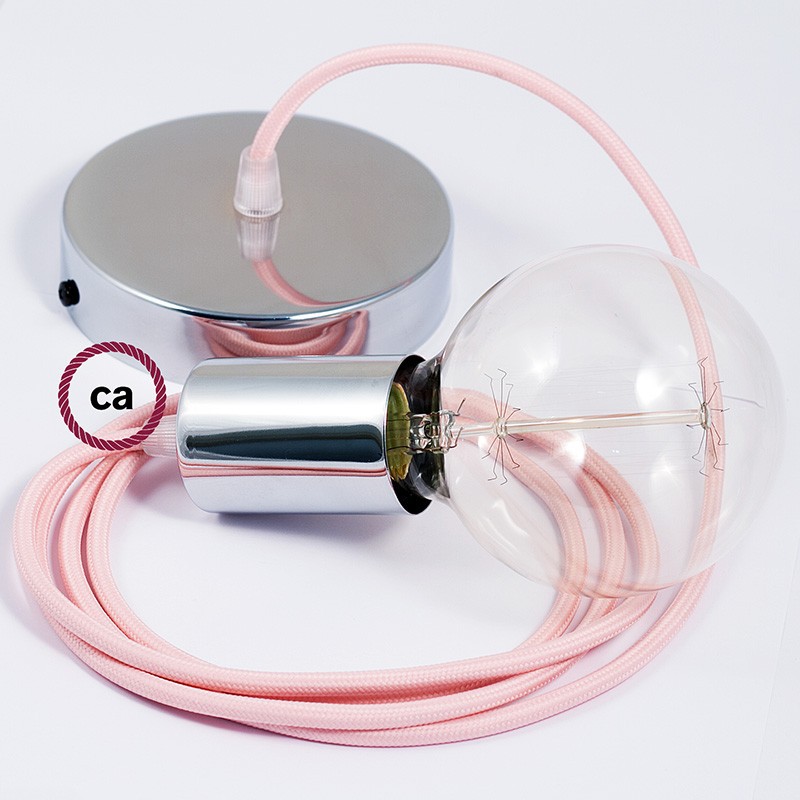 Crea tu pendel con el cable textil Rosa Baby en tejido Efecto Seda RM16: elige el color del rosetón y del portalámpara, la longitud del cable y si recibirlo ya montado por el personal creative-cables o en forma de kit para el montaje. Los pendels Creative-cables son ideales para dar un toque de estilo y de color a tu hogar.