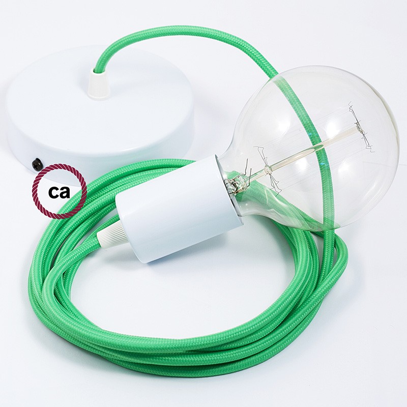 Crea tu pendel con el cable textil Verde Lima en tejido Efecto Seda RM18: elige el color del rosetón y del portalámpara, la longitud del cable y si recibirlo ya montado por el personal creative-cables o en forma de kit para el montaje. Los pendels Creative-cables son ideales para dar un toque de estilo y de color a tu hogar.
