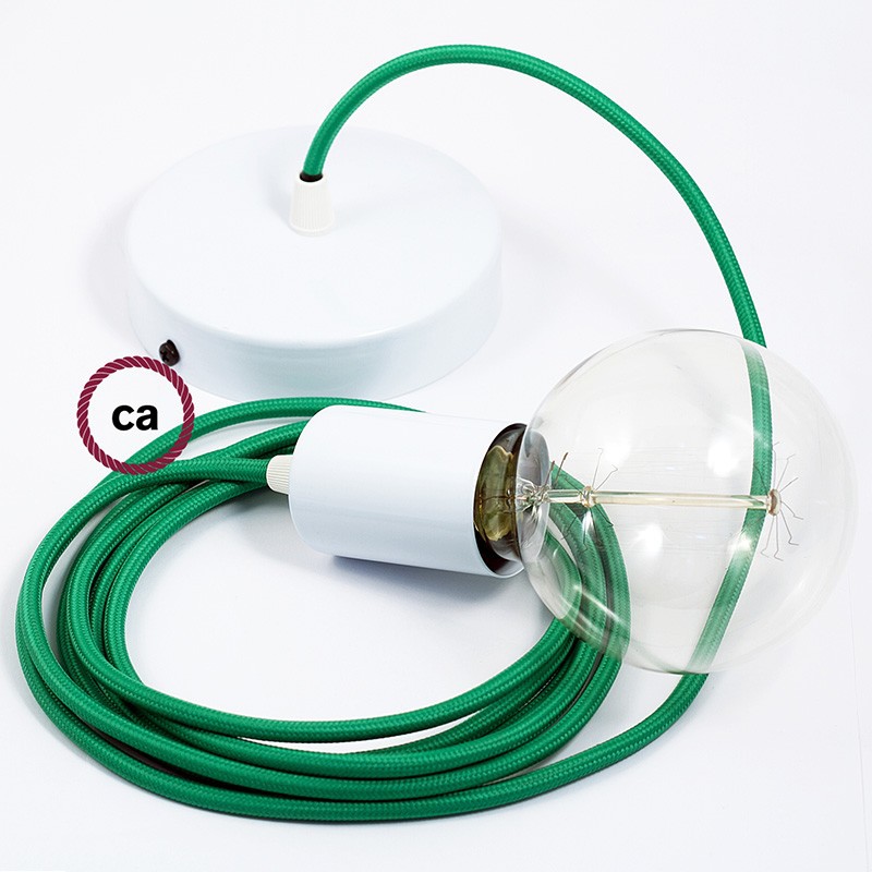 Crea tu pendel con el cable textil Verde en tejido Efecto Seda RM06: elige el color del rosetón y del portalámpara, la longitud del cable y si recibirlo ya montado por el personal creative-cables o en forma de kit para el montaje. Los pendels Creative-cables son ideales para dar un toque de estilo y de color a tu hogar.