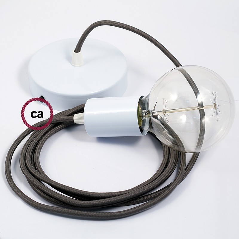 Crea tu pendel con el cable textil Gris en tejido Efecto Seda RM03: elige el color del rosetón y del portalámpara, la longitud del cable y si recibirlo ya montado por el personal creative-cables o en forma de kit para el montaje. Los pendels Creative-cables son ideales para dar un toque de estilo y de color a tu hogar.