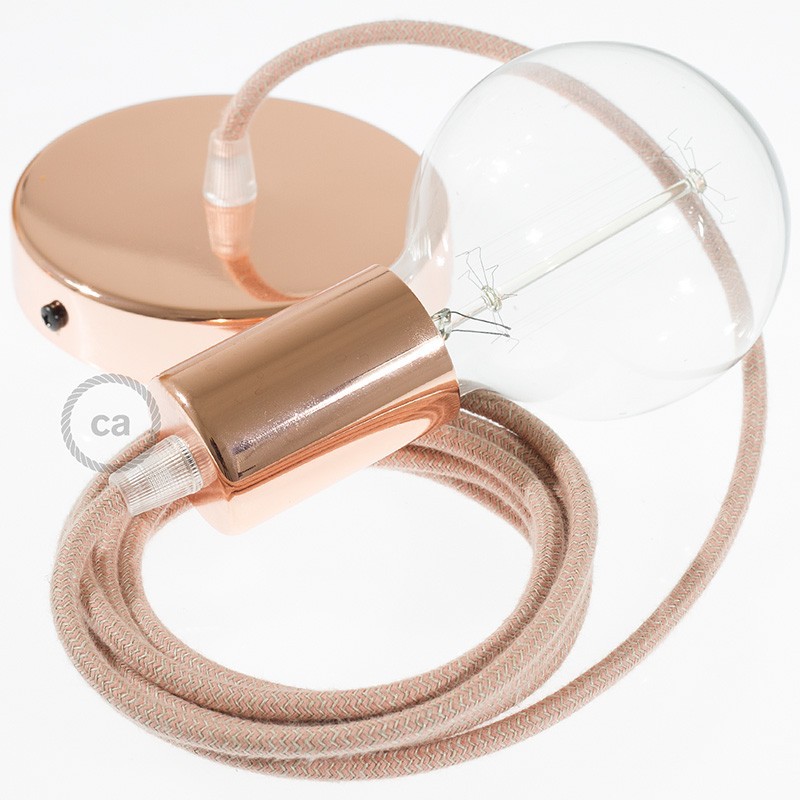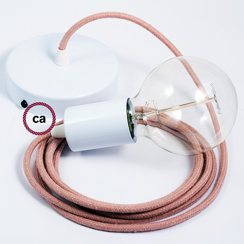 Crea tu pendel con el cable textil ZigZag Rosa Antico RD71: elige el color del rosetón y del portalámpara, la longitud del cable y si recibirlo ya montado por el personal creative-cables o en forma de kit para el montaje. Los pendels Creative-cables son ideales para dar un toque de estilo y de color a tu hogar.