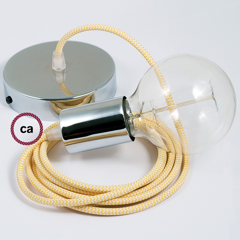 Crea tu pendel con el cable textil ZigZag Amarillo RZ10: elige el color del rosetón y del portalámpara, la longitud del cable y si recibirlo ya montado por el personal creative-cables o en forma de kit para el montaje. Los pendels Creative-cables son ideales para dar un toque de estilo y de color a tu hogar.