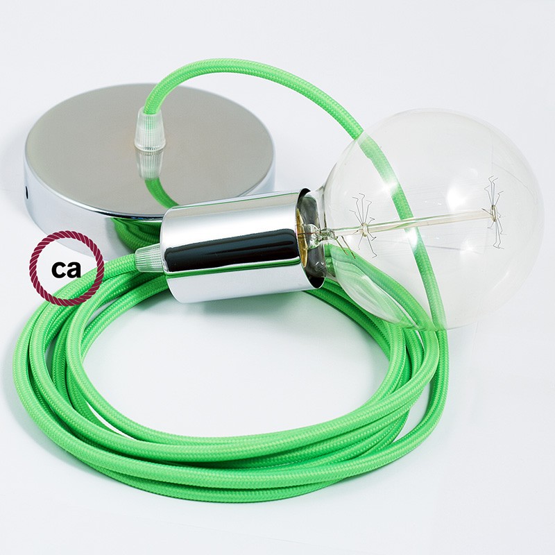 Crea tu pendel con el cable textil Verde Fluo RF06: elige el color del rosetón y del portalámpara, la longitud del cable y si recibirlo ya montado por el personal creative-cables o en forma de kit para el montaje. Los pendels Creative-cables son ideales para dar un toque de estilo y de color a tu hogar.