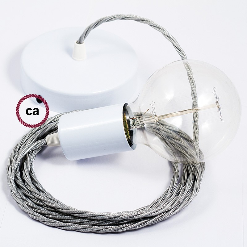 Crea tu pendel con el cable textil Plateado en tejido Efecto Seda TM02: elige el color del rosetón y del portalámpara, la longitud del cable y si recibirlo ya montado por el personal creative-cables o en forma de kit para el montaje. Los pendels Creative-cables son ideales para dar un toque de estilo y de color a tu hogar.