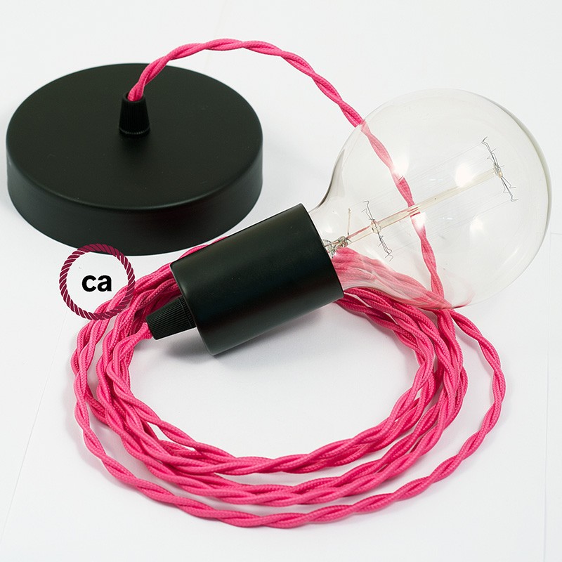 Crea tu pendel con el cable textil Fuchsia en tejido Efecto Seda TM08: elige el color del rosetón y del portalámpara, la longitud del cable y si recibirlo ya montado por el personal creative-cables o en forma de kit para el montaje. Los pendels Creative-cables son ideales para dar un toque de estilo y de color a tu hogar.