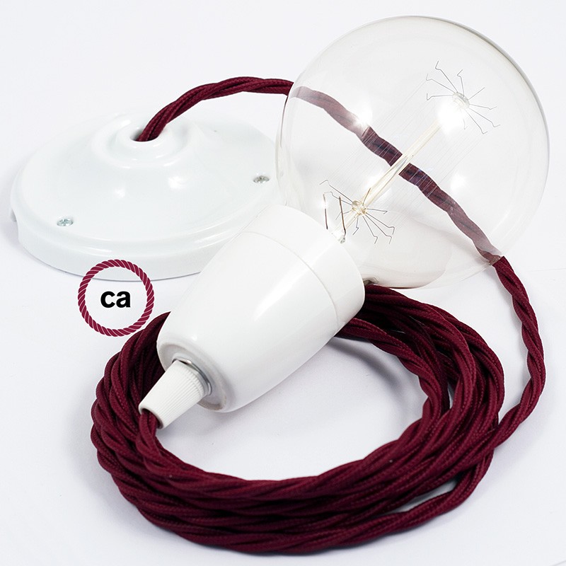 Crea tu pendel en porcelana con el cable textil Burdeos en tejido Efecto Seda TM19: elige la longitud del cable y si recibirlo ya montado por el personal Creative-cables o en forma de kit para el montaje. Los pendels Creative-cables son ideales para dar un toque de estilo y de color a tu hogar.