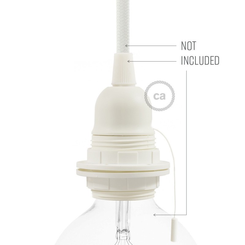 Un portalámparas de termoplástico E27 para pantalla con tirador y doble arandela se usa para montar lámparas de pared, de mesa o de techo para pantalla.