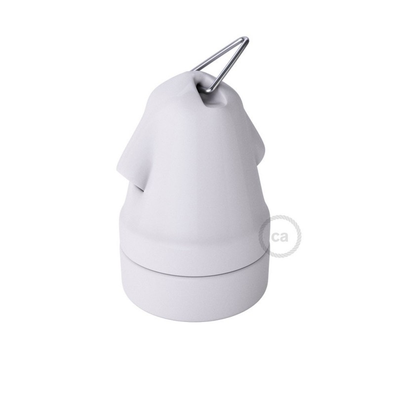 El kit de portalámparas de porcelana Vintage E27 con dos agujeros se puede utilizar para montar lámparas de estilo guirnalda ya que permite conectar varias bombillas: también cuenta con un gancho para colgarlo donde sea necesario.