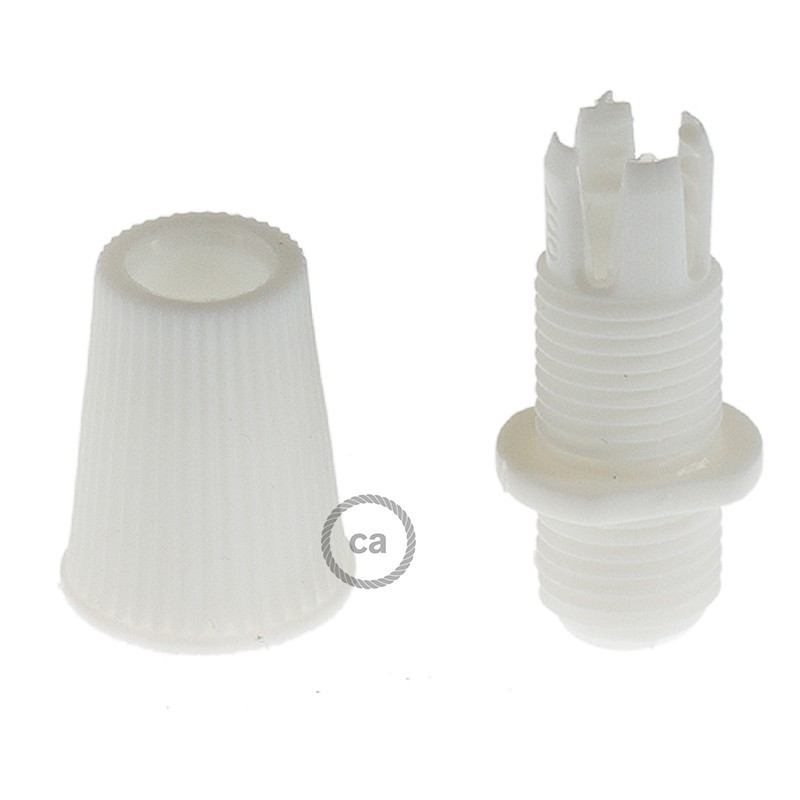 Prensaestopa redondo plástico blanco completo con tubo roscado, tuerca y arandela.