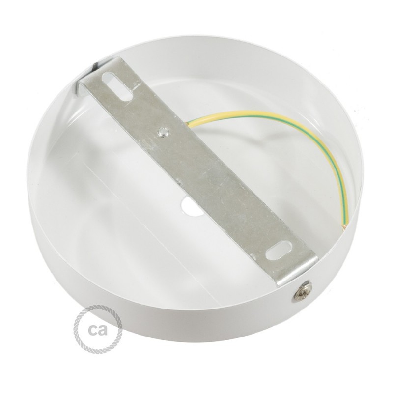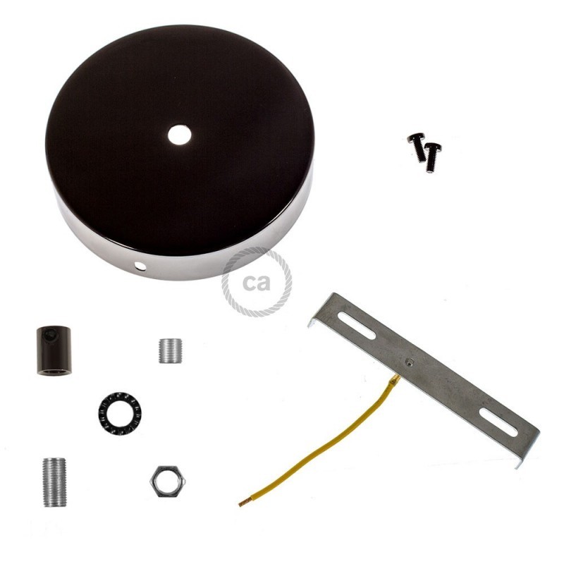 Un kit de rosetón de metal con un agujero se utiliza para montar una lámpara de pared o techo con un solo punto de luz.