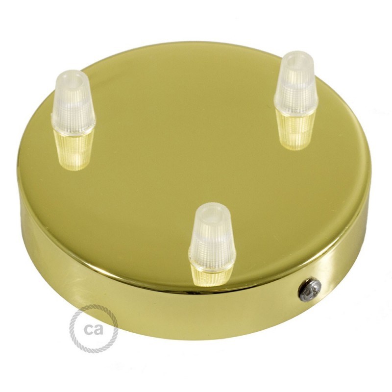 Un kit de rosetón de metal con tres agujeros se utiliza para montar una lámpara de pared o techo con tres puntos de luz.