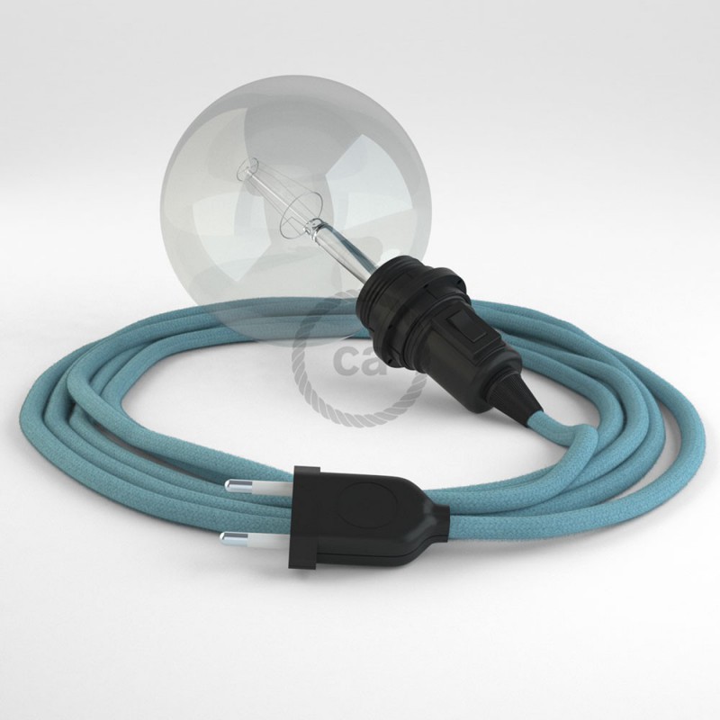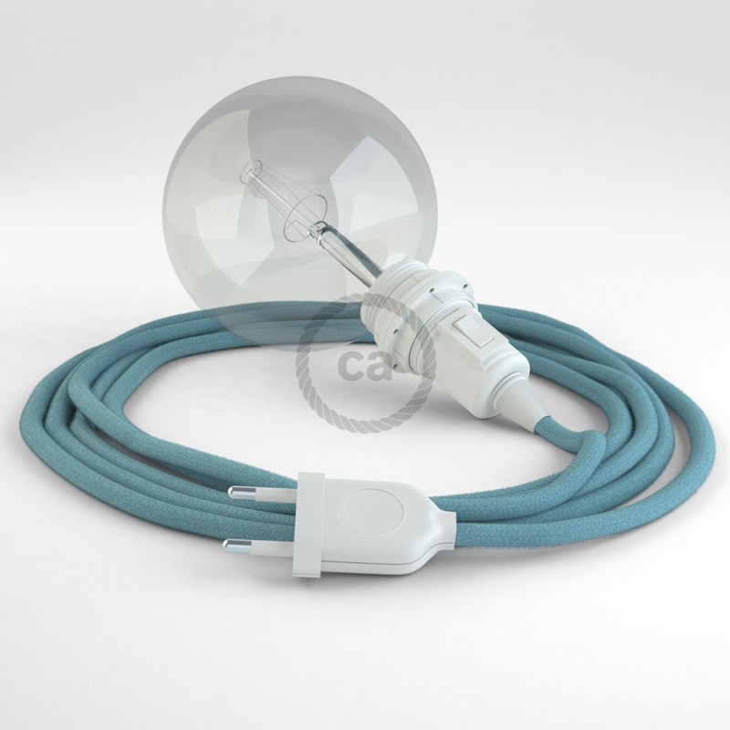 La lámpara colgante Snake para pantalla Algodón Oceano RC53: elige el color de la clavija, el color del portalámpara y la longitud del cable.