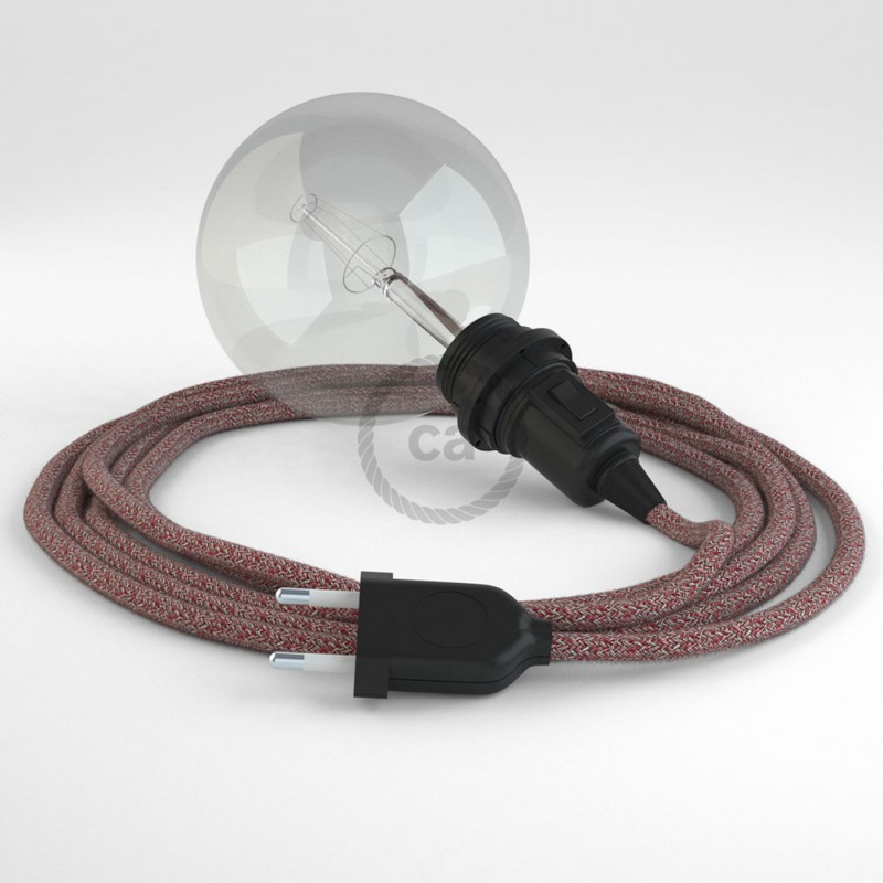 La lámpara colgante Snake para pantalla Glitter en Lino Natural Rojo RS83: elige el color de la clavija, el color del portalámpara y la longitud del cable.