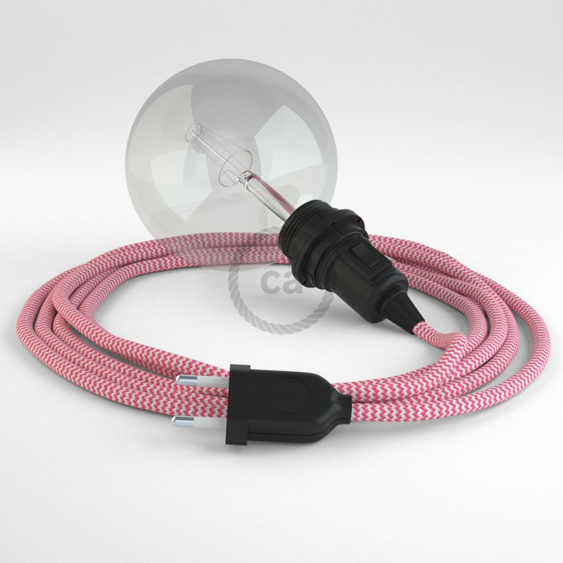 La lámpara colgante Snake para pantalla ZigZag Fuchsia RZ08: elige el color de la clavija, el color del portalámpara y la longitud del cable.