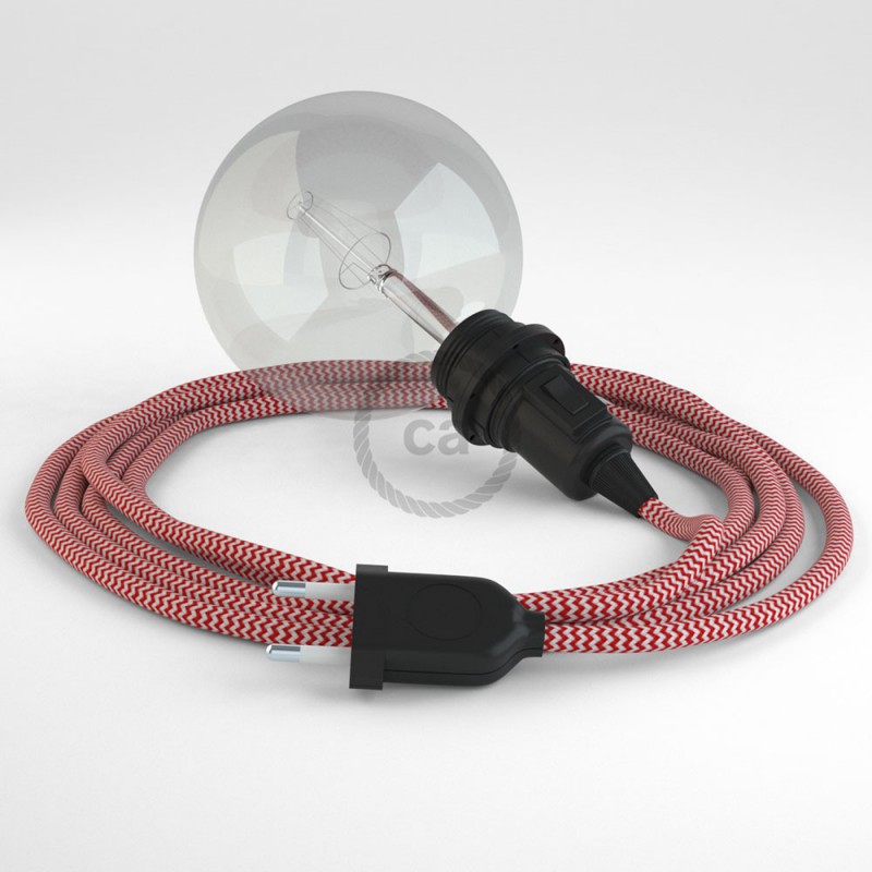 La lámpara colgante Snake para pantalla ZigZag Rojo RZ09: elige el color de la clavija, el color del portalámpara y la longitud del cable.