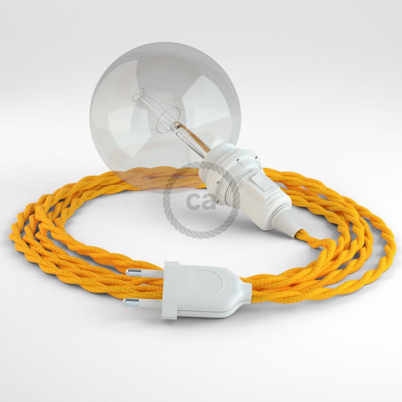 La lámpara colgante Snake para pantalla Efecto Seda Amarillo TM10: elige el color de la clavija, el color del portalámpara y la longitud del cable.
