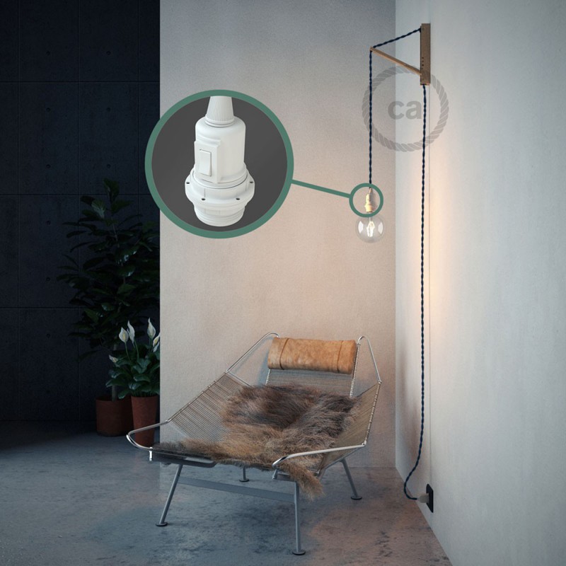 Portalámpara en termoplástica con arendela E27 con interuptor, máximo 60W, con certificado IMQ. Made in Italy.