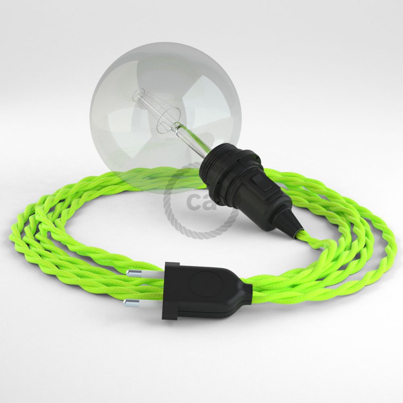La lámpara colgante Snake para pantalla Fluo Amarillo TF10: elige el color de la clavija, el color del portalámpara y la longitud del cable.