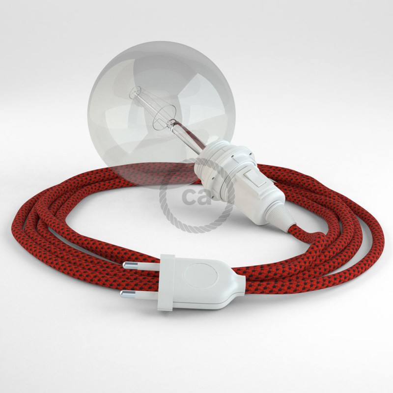 La lámpara colgante Snake para pantalla Red Devil 3D RT94: elige el color de la clavija, el color del portalámpara y la longitud del cable.