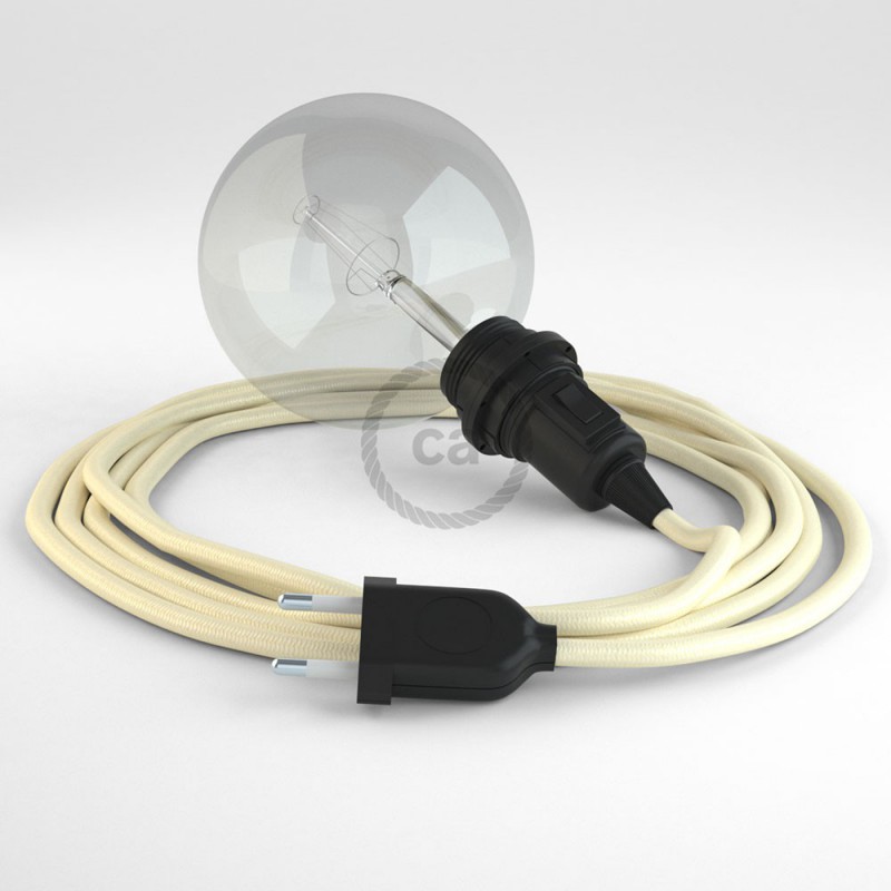 La lámpara colgante Snake para pantalla Efecto Seda Marfil RM00: elige el color de la clavija, el color del portalámpara y la longitud del cable.