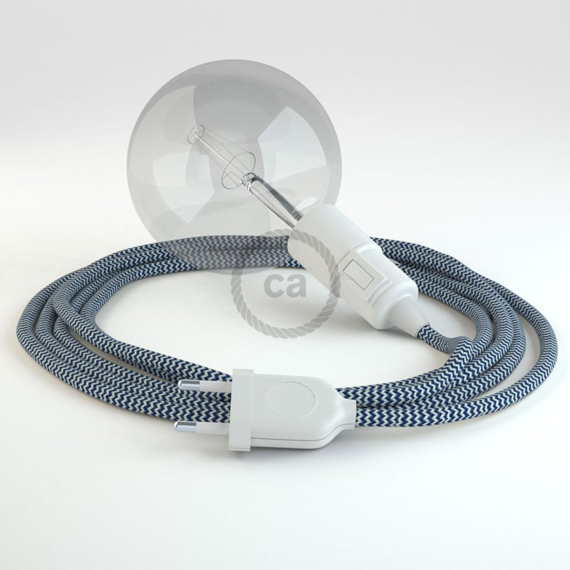 La lámpara colgante Snake ZigZag Azul RZ12: elige el color de la clavija, el color del portalámpara y la longitud del cable.