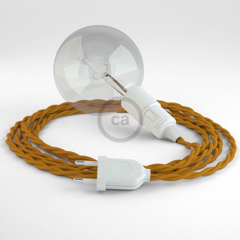 La lámpara colgante Snake Efecto Seda Mostaza TM25: elige el color de la clavija, el color del portalámpara y la longitud del cable.