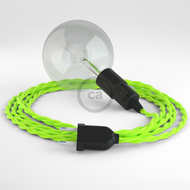 La lámpara colgante Snake Fluo Amarillo TF10: elige el color de la clavija, el color del portalámpara y la longitud del cable.