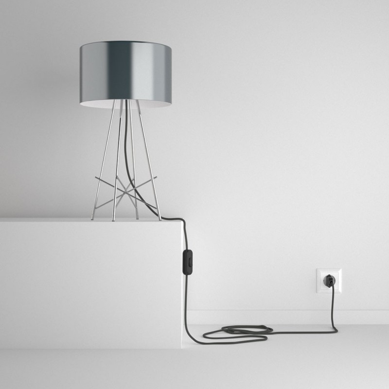 SnakeBis cableado con portalámpara cable textil Gris en tejido Efecto Seda RM03